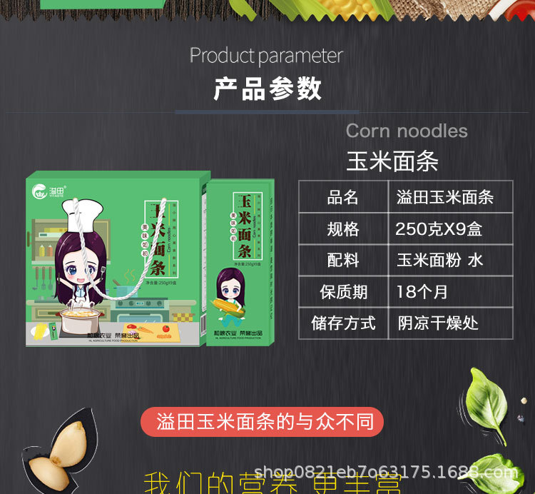 溢田粗粮玉米面条 杂粮挂面黄面条 东北特产麻辣烫面250g*9/盒