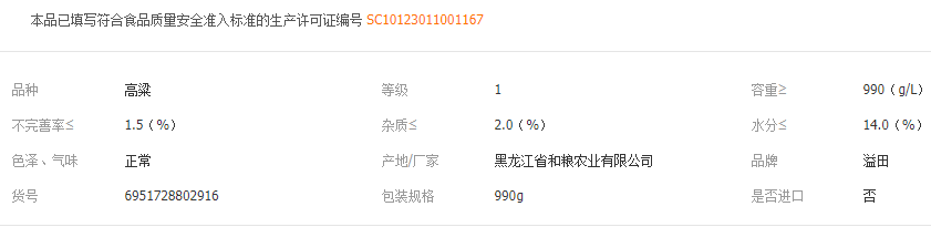 和粮农业 溢田五谷杂粮有机高粱米东北特产